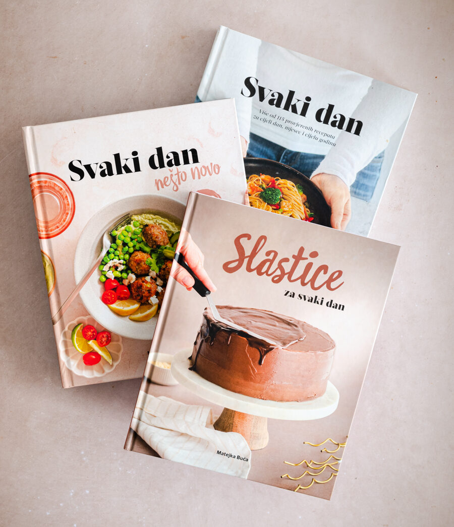 U svoje sam tri kuharice ulila srce i dušu, ali i sve što sam naučila o kuhanju od malih nogu. One su pune praktičnih, jednostavnih i ukusnih jela za svaku prigodu – od doručka do svečanih večera, od obiteljskih proslava do popodneva u parkiću. A jedna je samo o desertima! One su moj dosanjani san u vašim velikodušnim rukama.